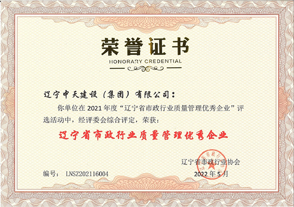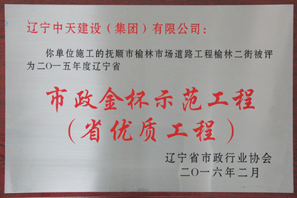 企業(yè)先后榮獲“全國優(yōu)秀施工企業(yè)”、 “中國AAA級信用企業(yè)”、“全國保障性安居工程建設(shè)勞動競賽先進單位”、“遼寧省最受尊敬企業(yè)”、“遼寧省優(yōu)秀建筑業(yè)企業(yè)”、“遼寧省工程建設(shè)質(zhì)量管理優(yōu)秀企業(yè)”、 “遼寧省守合同、重信用企業(yè)”、遼寧省“AAA級信用企業(yè)”、 “撫順市安全生產(chǎn)先進單位、紅旗單位”、“撫順市安康杯競賽先進集體”等多項殊榮。