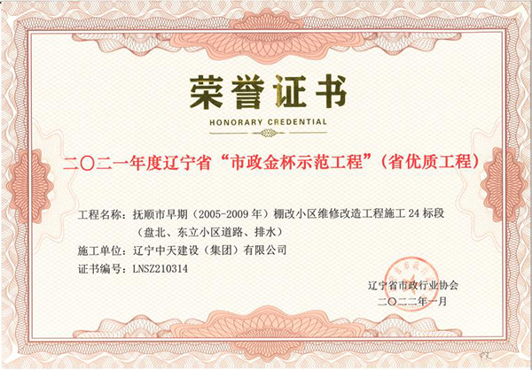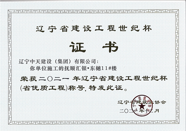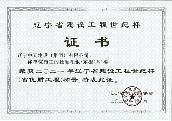 遼寧中天建設(shè)集團領(lǐng)導(dǎo)班子認真貫徹落實科學(xué)發(fā)展觀,堅持以人為本,積極培育“開拓進取,求新向上,求真務(wù)實,團結(jié)奉獻”的企業(yè)精神和“干一項工程交一方朋友,占一方市場,樹一座豐碑”的經(jīng)營理念。經(jīng)過遼寧中天建設(shè)者的辛勤耕耘,許多建筑精品工程象一座座豐碑聳立在撫順大地上,令人矚目。撫順市保障性住房建設(shè)工程榮獲全國優(yōu)質(zhì)工程金獎,撫順移動通訊綜合樓、撫順市電信綜合樓、撫順市三寶屯污水處理廠擴建及中水回用工程等多項工程獲得“遼寧省世紀(jì)杯工程”、“遼寧市政金杯”工程等殊榮。公司還多次榮獲“省建筑業(yè)質(zhì)量管理先進施工企業(yè)”稱號。